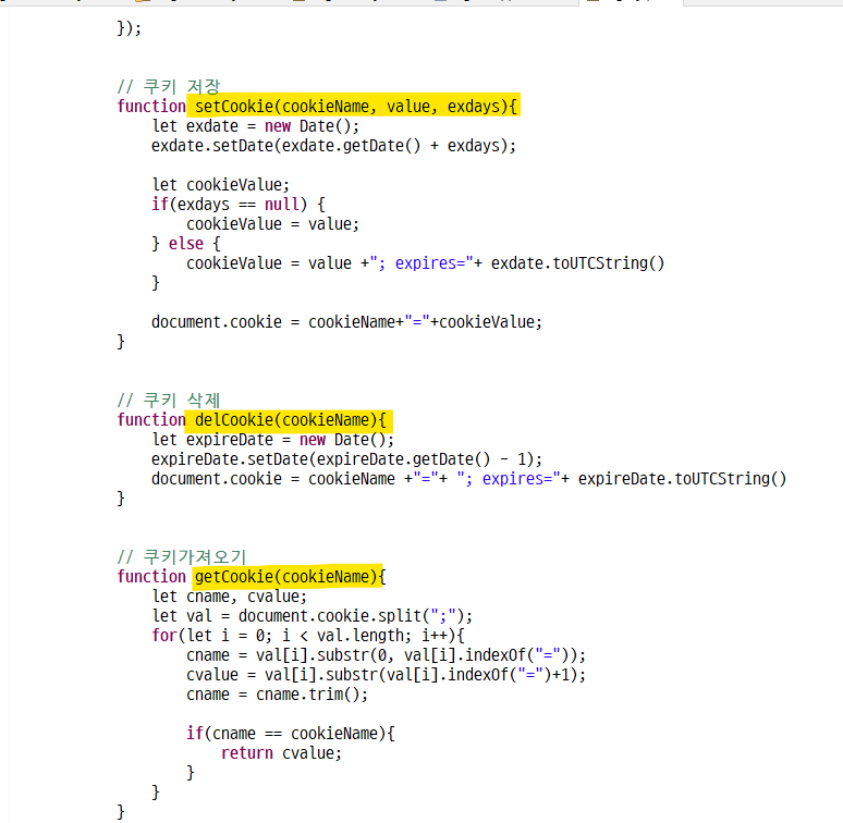 setCookie("setS", "S", 7); 해당 id를 SuserID로, S를 setS로 쿠키에 7일동안 저장