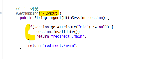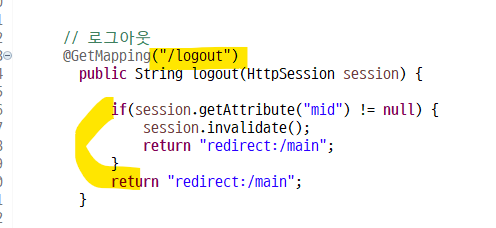LoginController 에서 /logout에 대한 요청 처리 => 세션 무효화