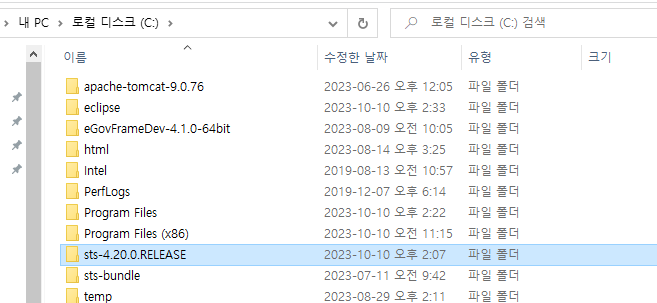 아래폴더 생성되는데 c드라이브로 이동시켜줬다.