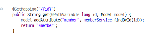 / member / 1 => 이 회원을 조회하겠다 ( 그래서 unique 한 값이 들어간다)