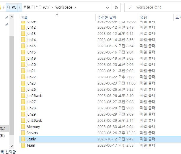 workspace에 study 폴더생성해주고