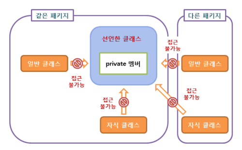 같은 클래스 멤버/ 같은 패키지 멤버만 접근 가능.