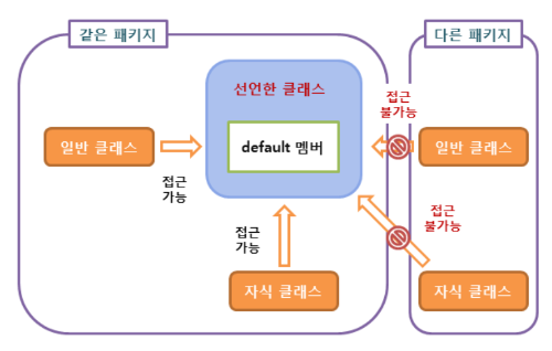 접근 제어의 기본값. 접근 제어자가 지정되지 않으면 자동 지정되는 값.