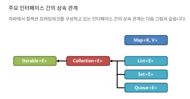 3. Map 인터페이스 : 키와 값의 쌍으로 데이터를 저장, 각 키는 유일해야 하며, 값은 중복될 수 없음.