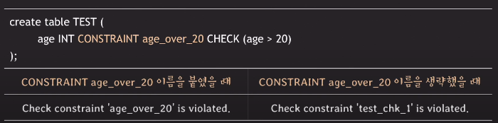 - constraint를 삭제하고 싶을 때 해당 이름으로 삭제 가능.
