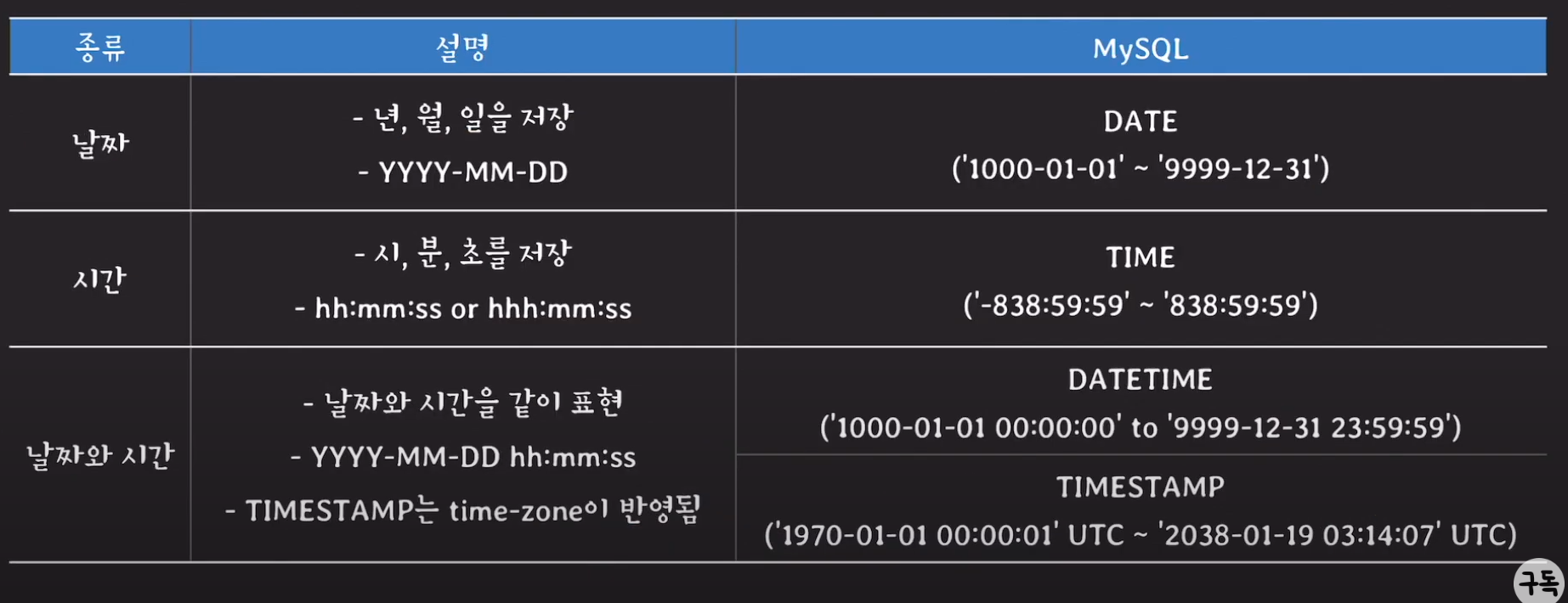 * MySQL에서 TIMESTAMP는 MySQL 내부 타임존의 영향을 받는다.