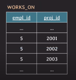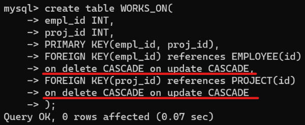 그런데 WORKS_ON 테이블 생성 시 각각의 FK 에 대해