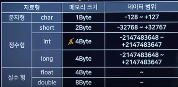 * 변수 : 데이터를 저장할 수 있는 메모리의 기억공간.