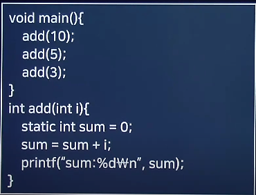 - static으로 선언하며 선언된 블록 내에서만 사용가능