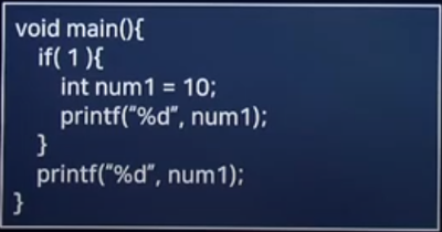=> num1이라는 변수는 if문(블록)내에서 선언했기 때문에 블록 밖에서 출력 불가