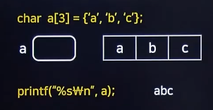 주소값을 출력하면 주소값이 가르키는 문자열을 끝(null)까지 연속으로 출력.