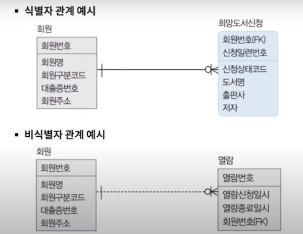 - FK (Foreign Key, 외래키) 속성 : 관계를 통해 다른 엔티티의 속성을 가져와 포함시킨 속성.