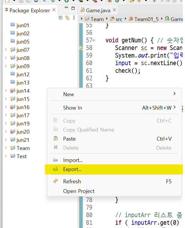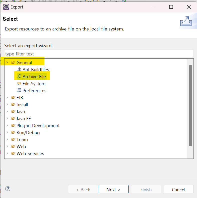 [ project 파일 zip파일로 추출 ]