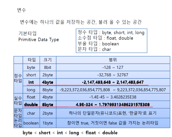 프로그램에서는 변수, 상수에 값을 담기 위해서는 그 값의 타입에 맞는 변수를 사용해야 합니다.