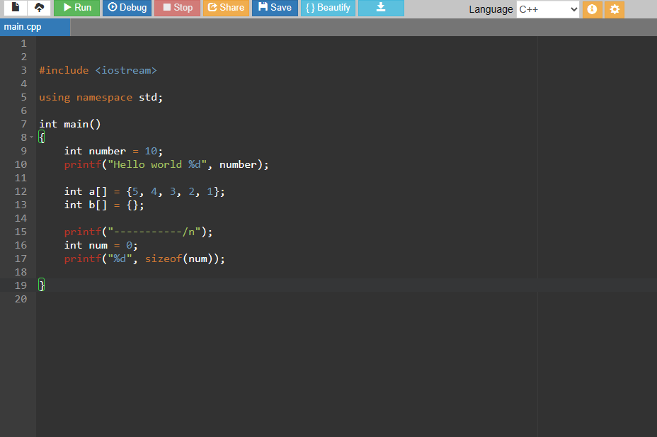 for(int i = 0; i < 10; i++){