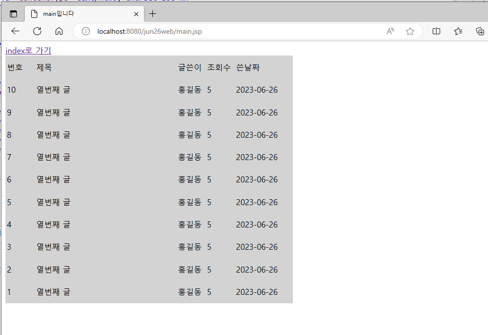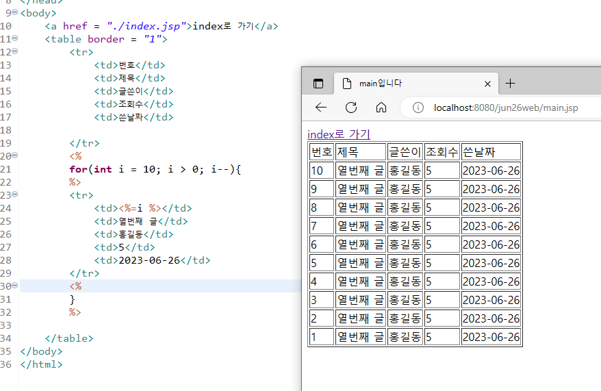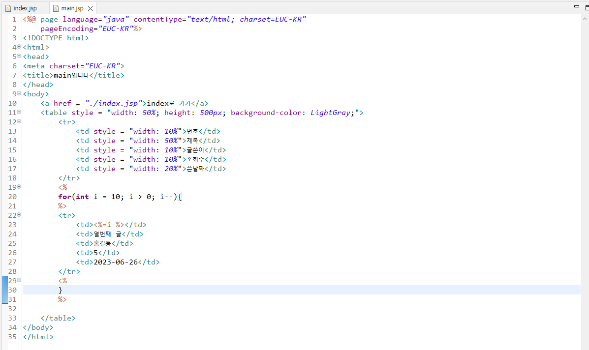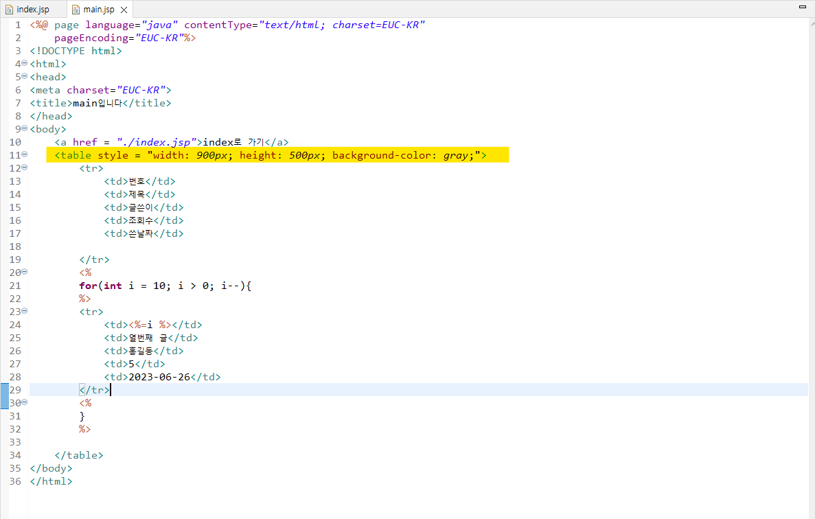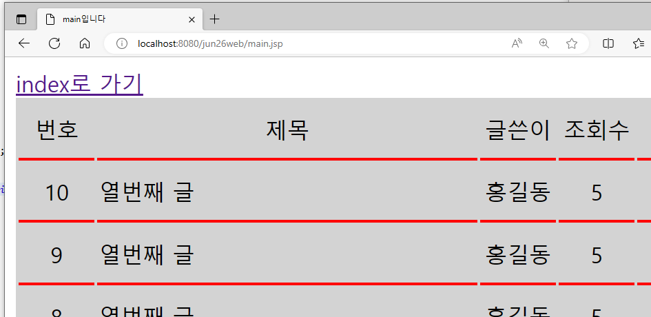 ( mian.jsp에 반복문으로 테이블출력 )