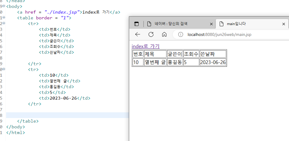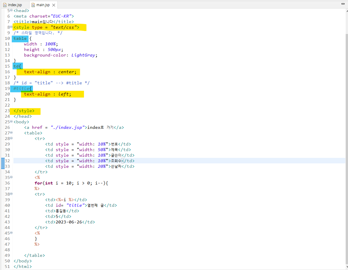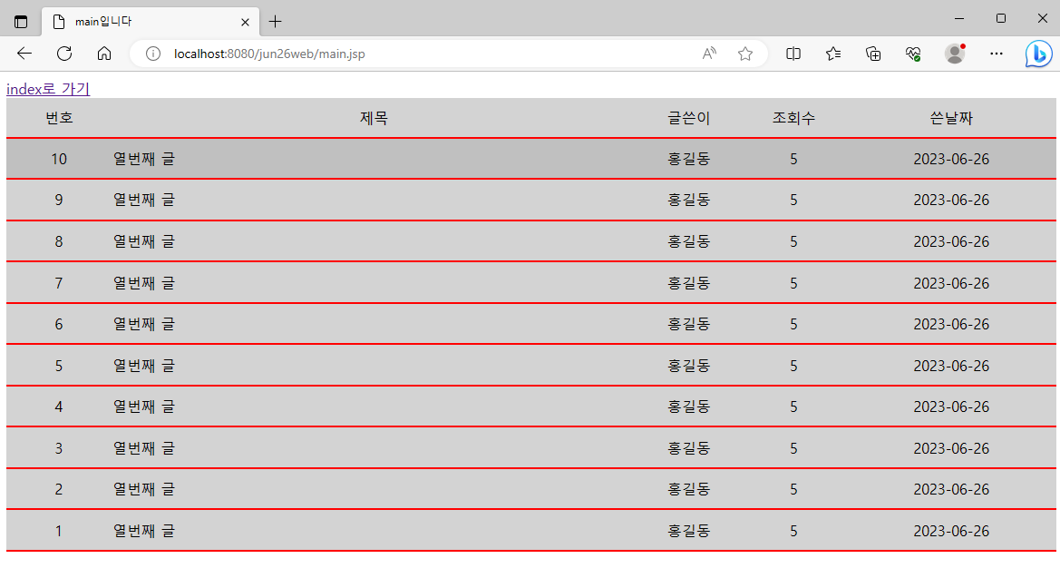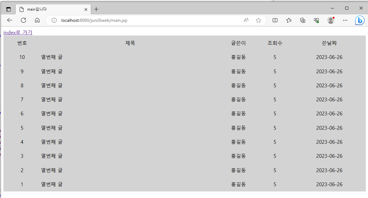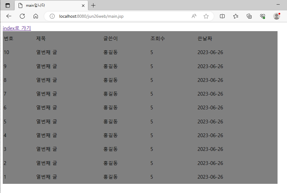 ( mian.jsp에 반복문으로 테이블출력 )