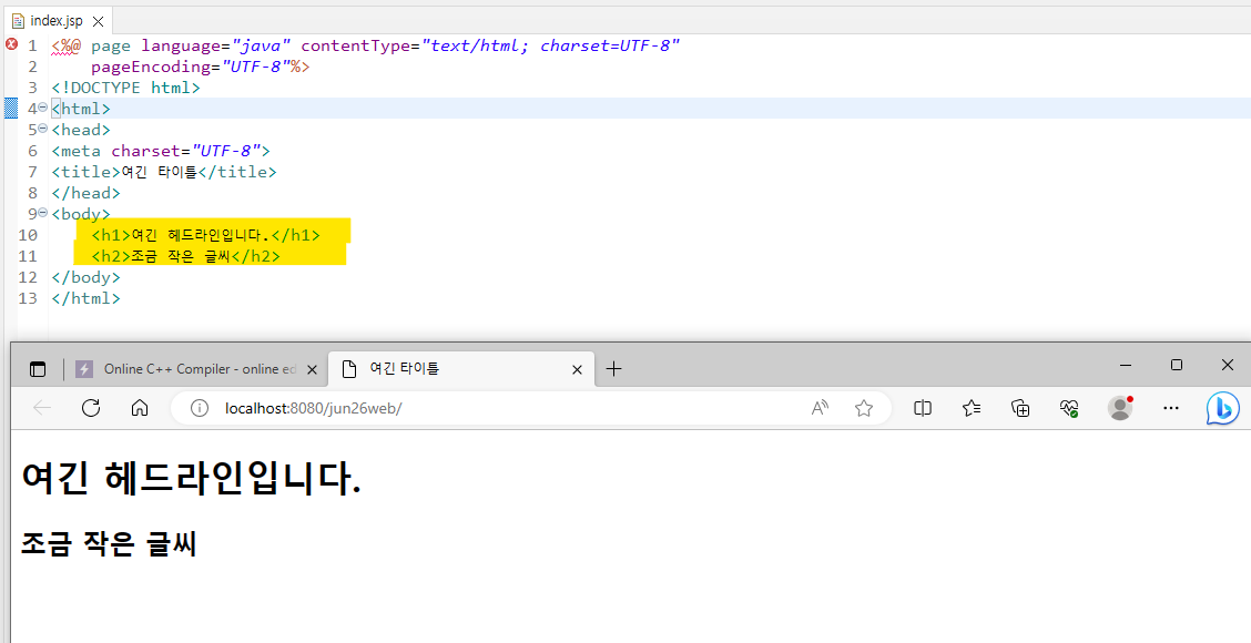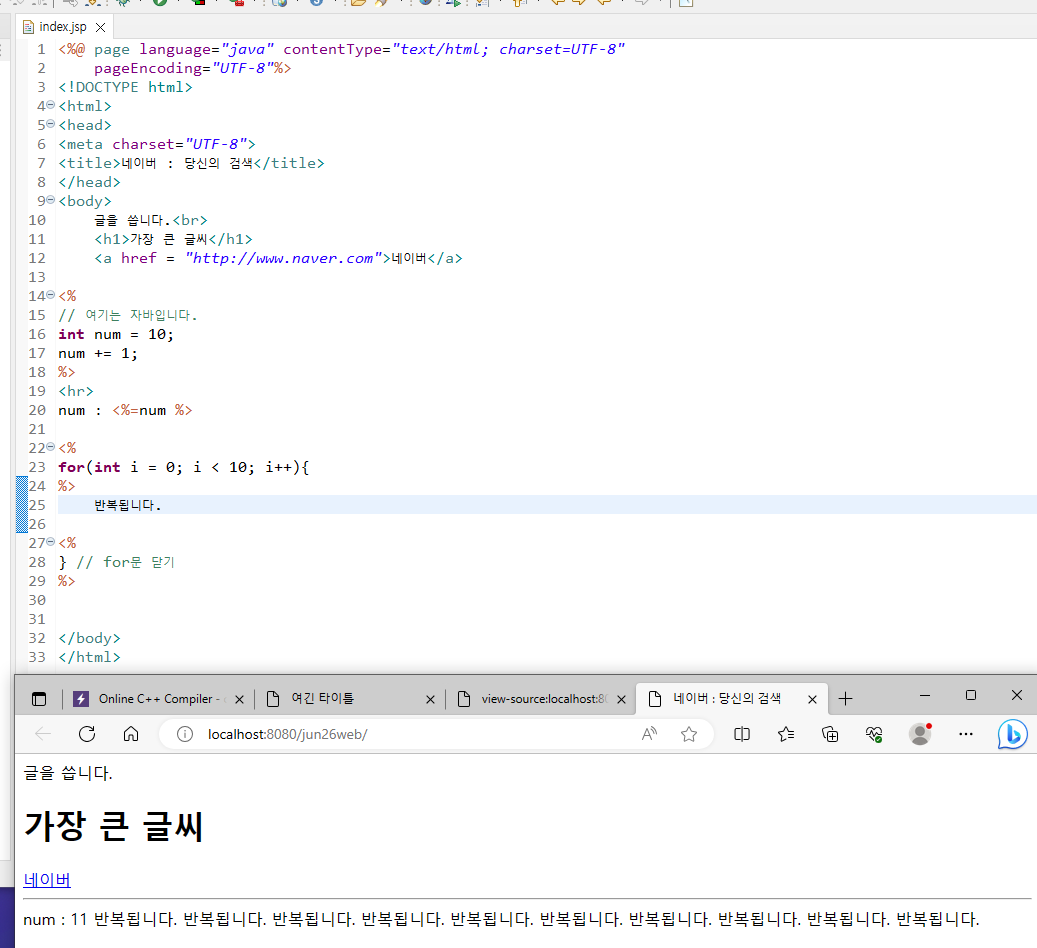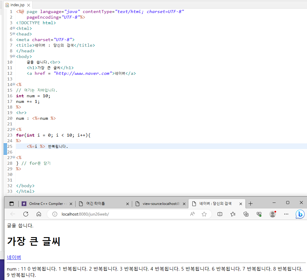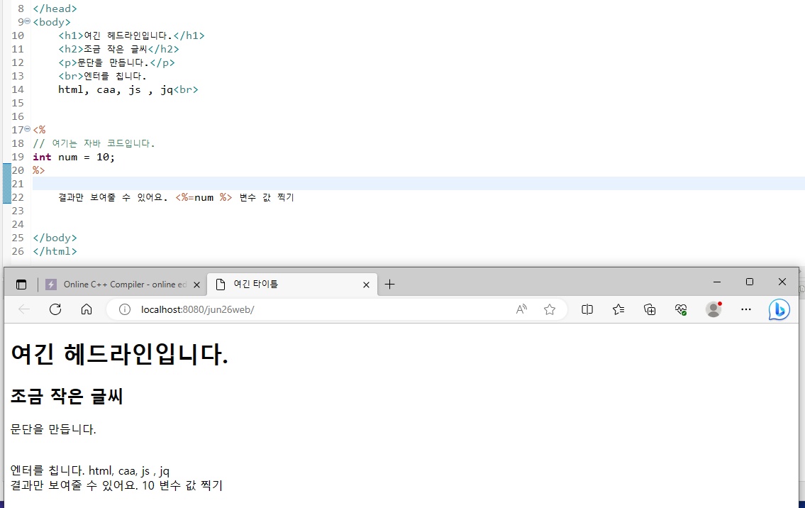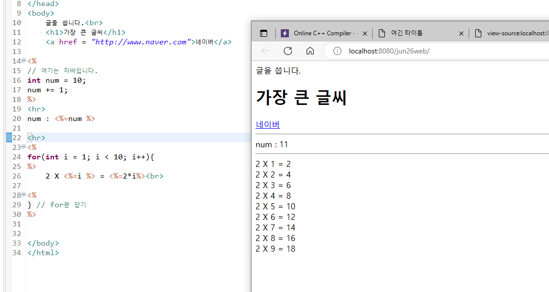 * java 코드는 웹 브라우저에서는 안보임! 결과만 출력.