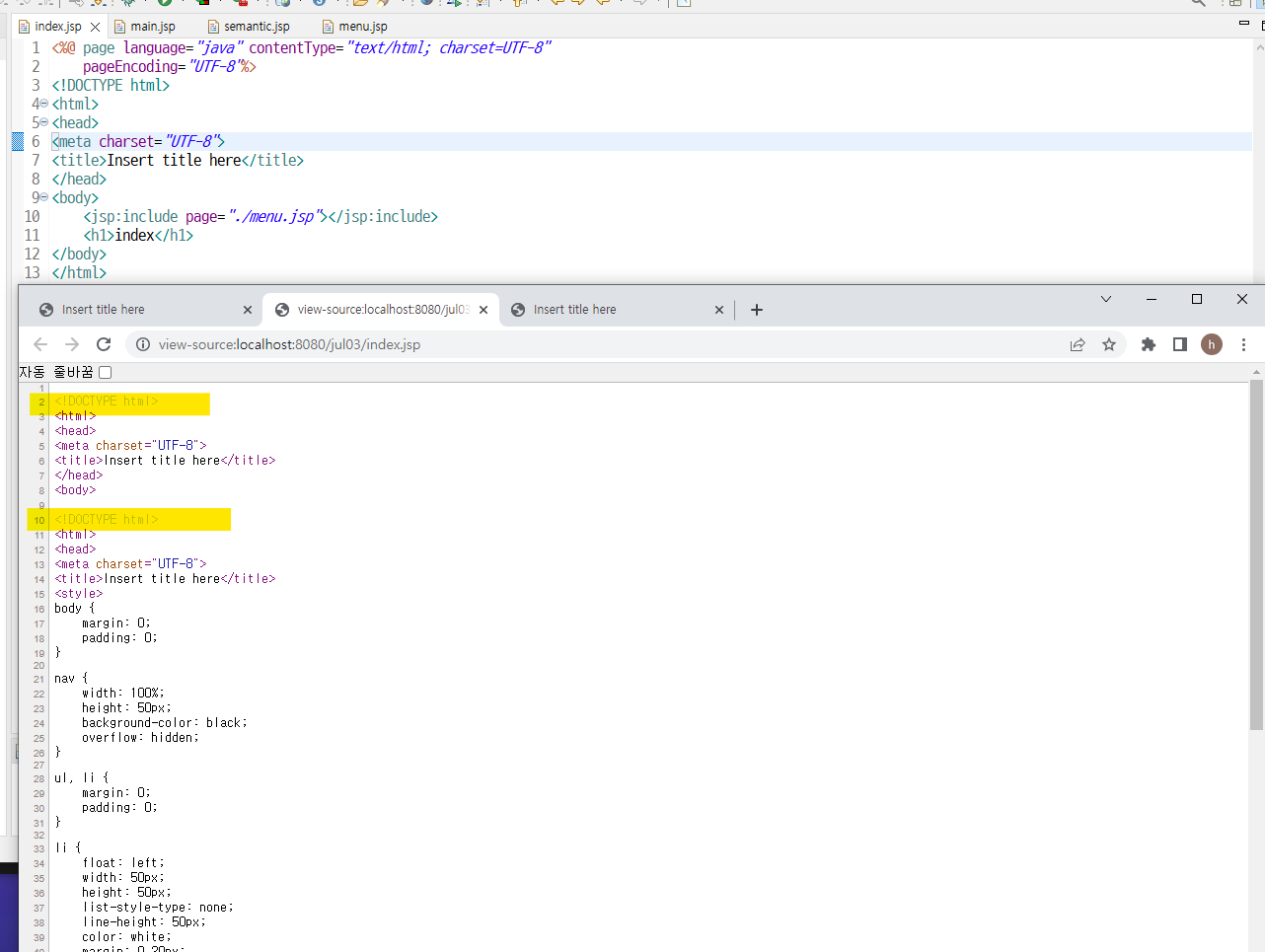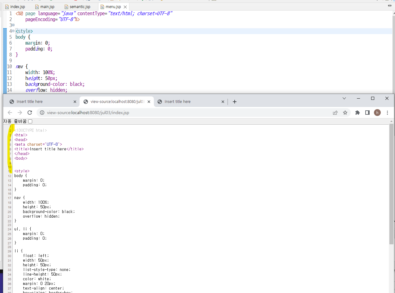 => menu.jsp 파일에서의 html코드는 삭제해주기!