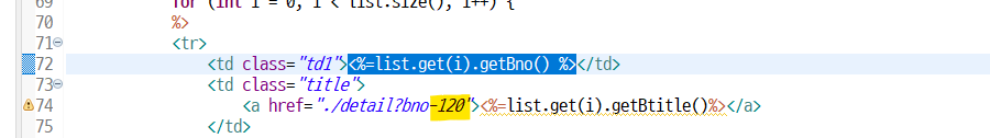 <a href="./detail?bno-120"><%=list.get(i).getBtitle()%></a>