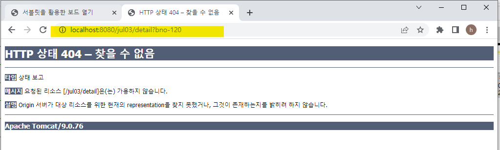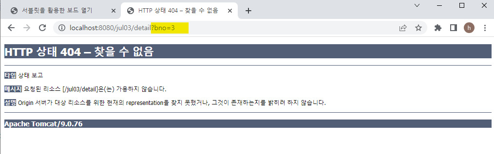 게시판 3번글 클릭하면 주소창에 해당하는 bno 표시