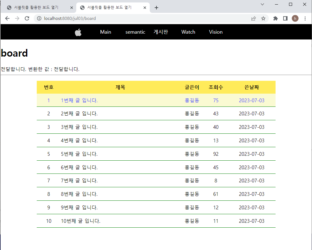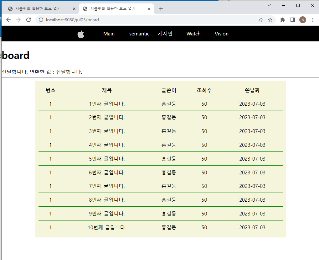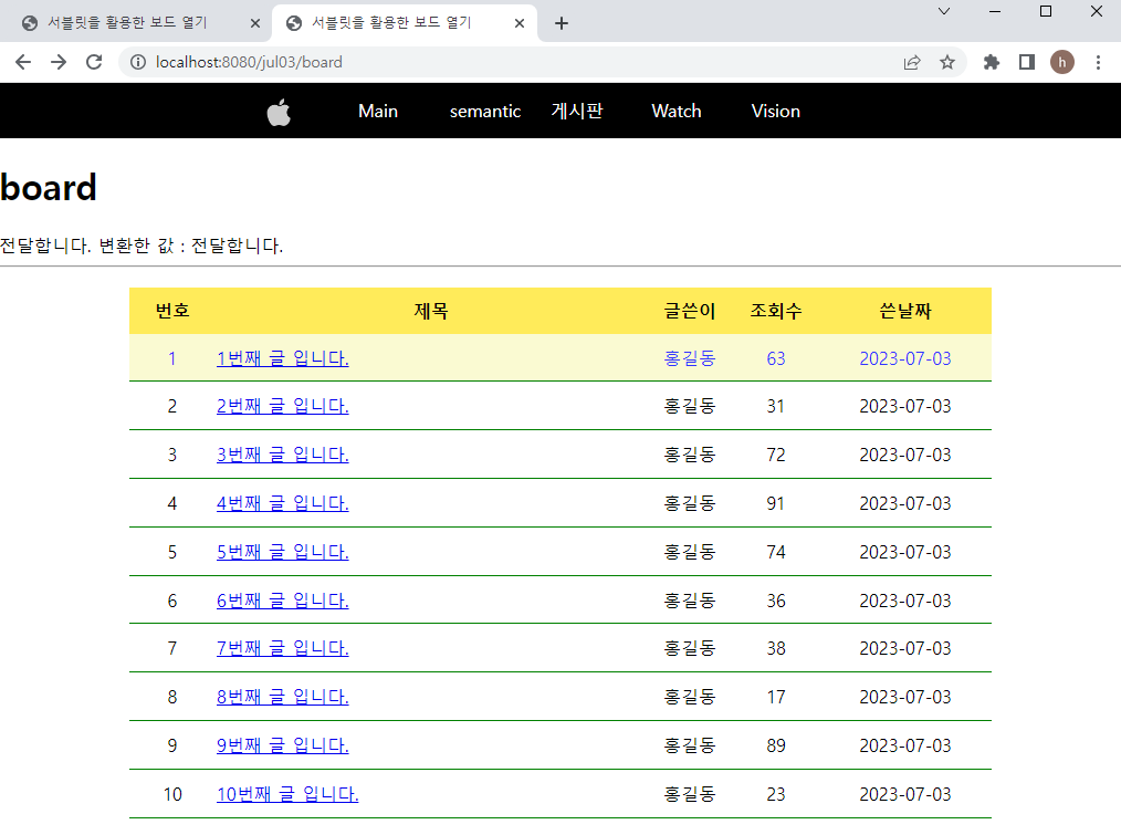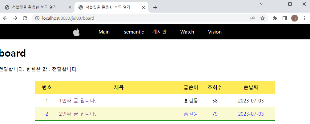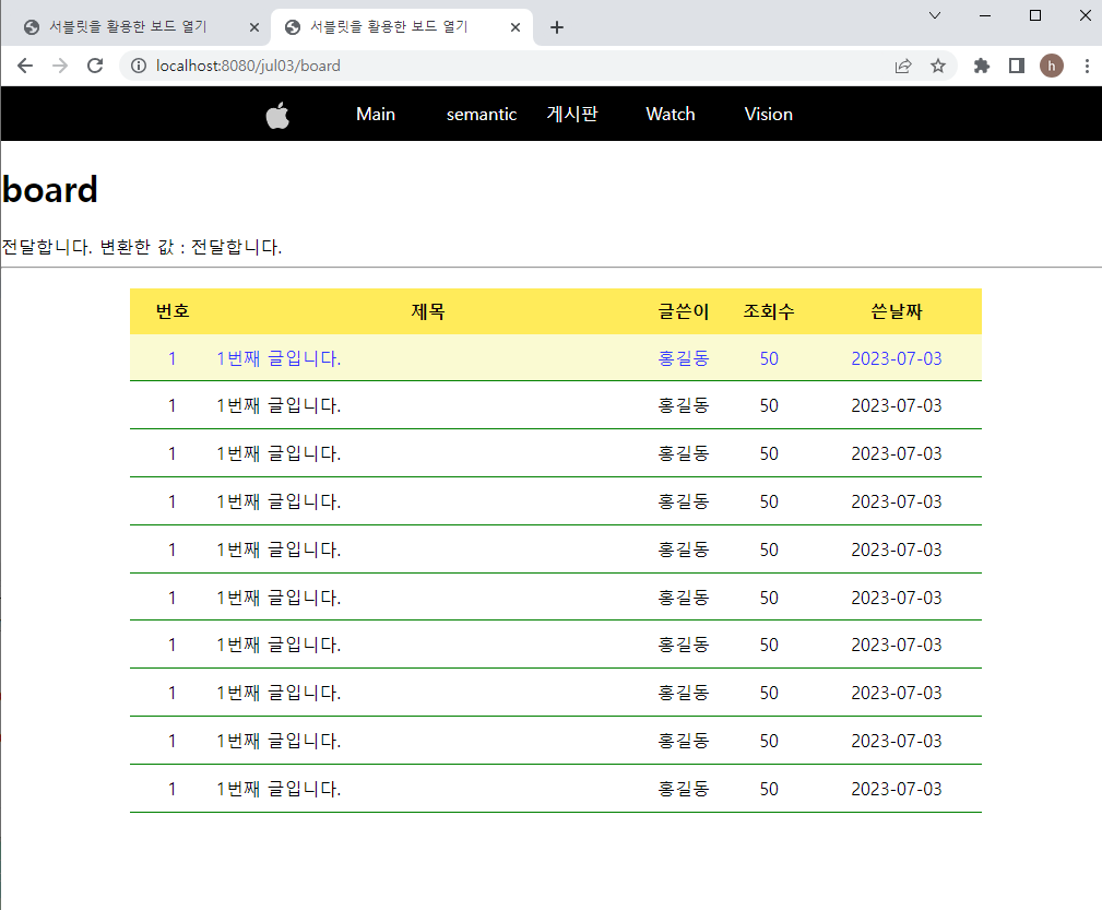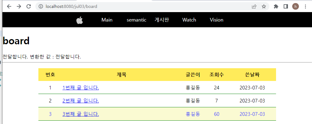 [board.jsp] _ 메뉴바 게시판에 실제 게시판 내용 넣기