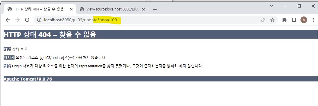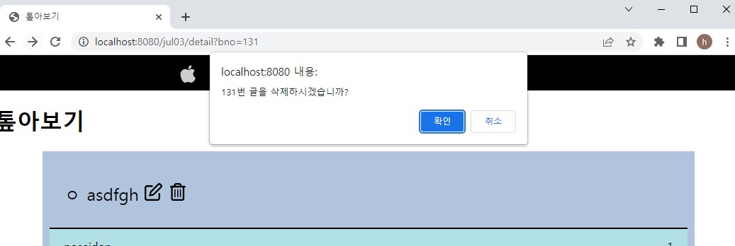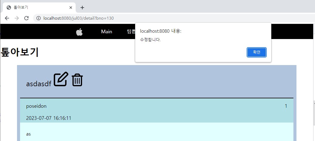 확인 눌렀을때 주소에 해당 bno 뜨는거 확인가능
