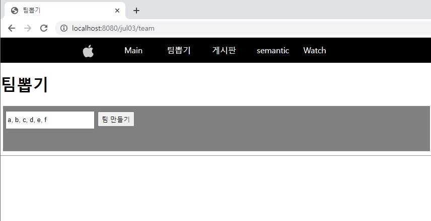 입력창 비어있거나 콤마가 없는상태로 팀만들기 버튼눌러주면 다시 원래의 페이지로 리셋됨!