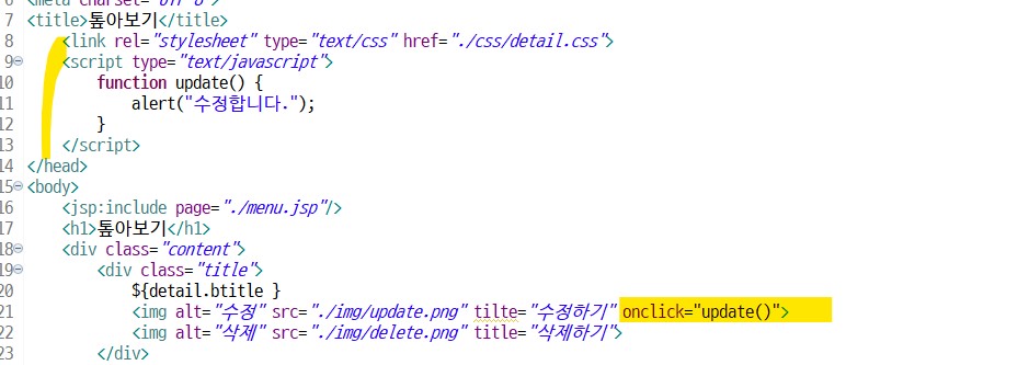 삭제 버튼에는 onclick = dele() 함수 추가