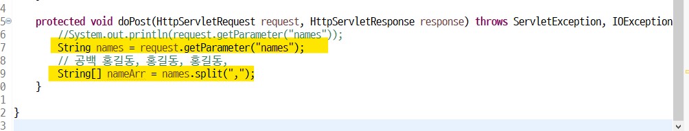 입력값을 String names에 통으로 넣어주고,