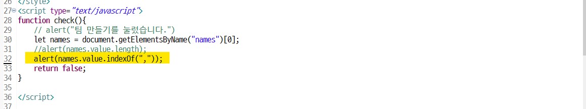alert(names.value.indexOf(","));