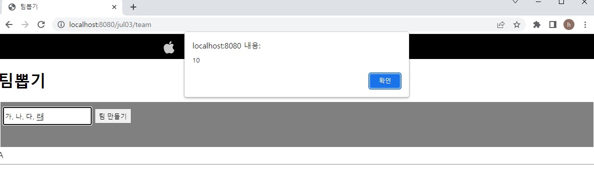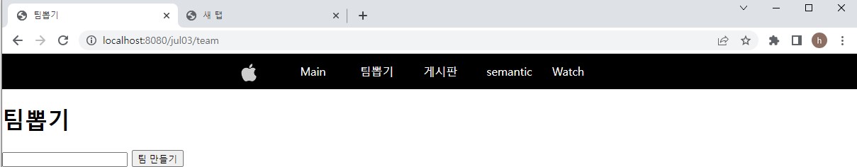 입력하고 팀만들기 버튼 누르면 (한글은 아직 깨짐, 일단 영어로 테스트)