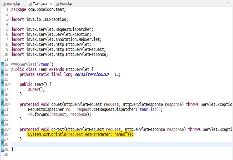 [ Team.java ] 서블릿생성