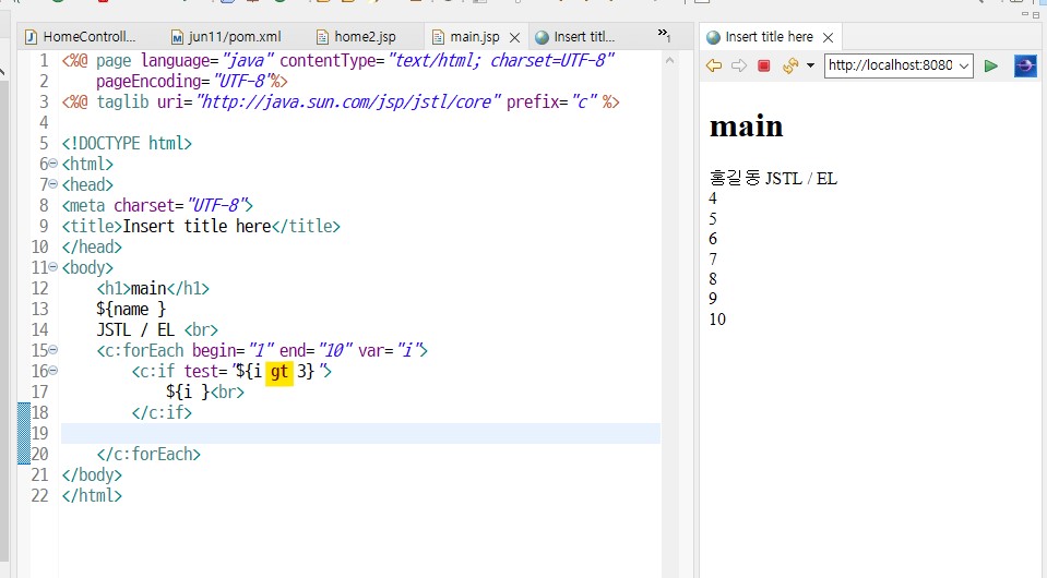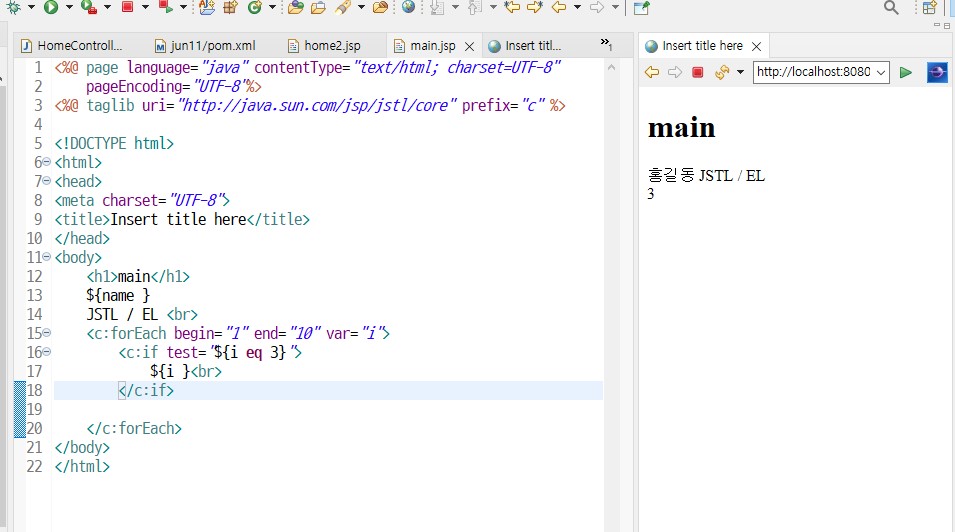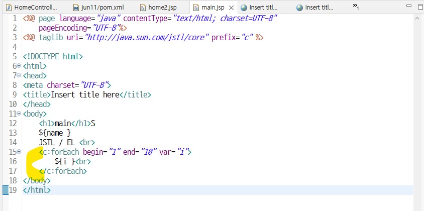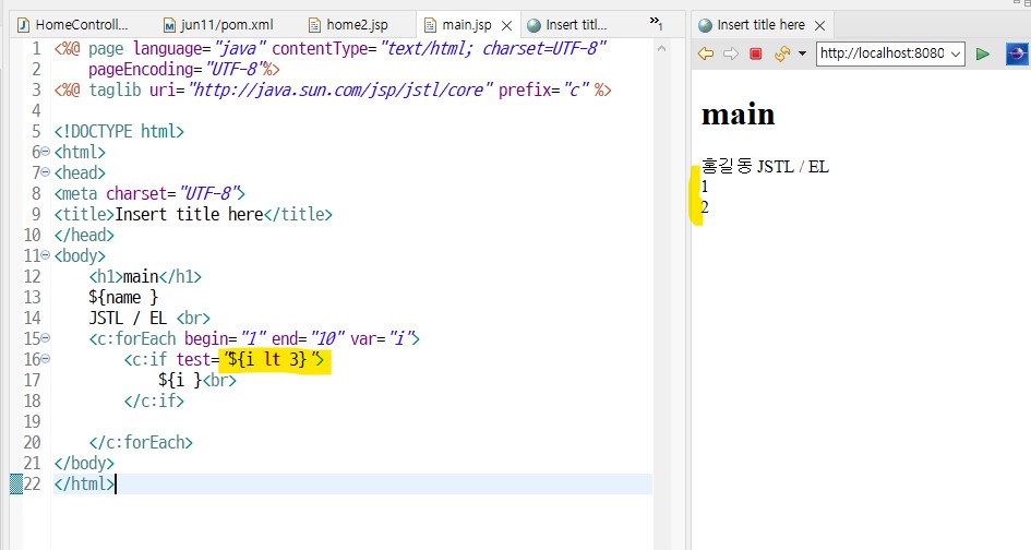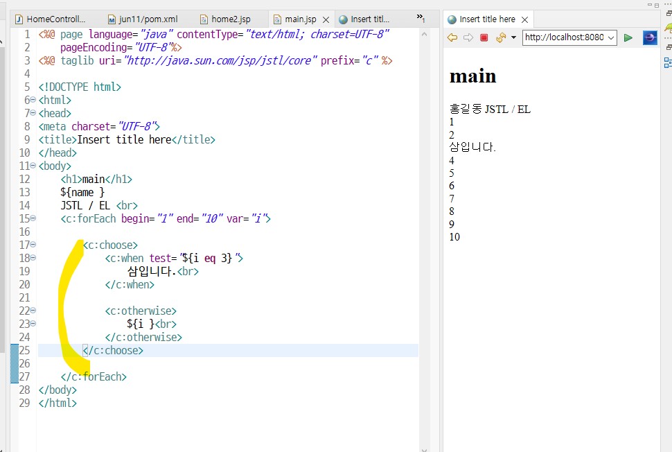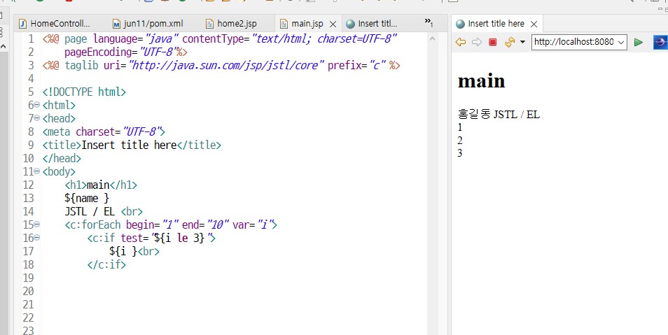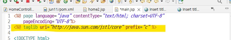 JSTL태그를 사용하려면 상단에 선언(@)필요