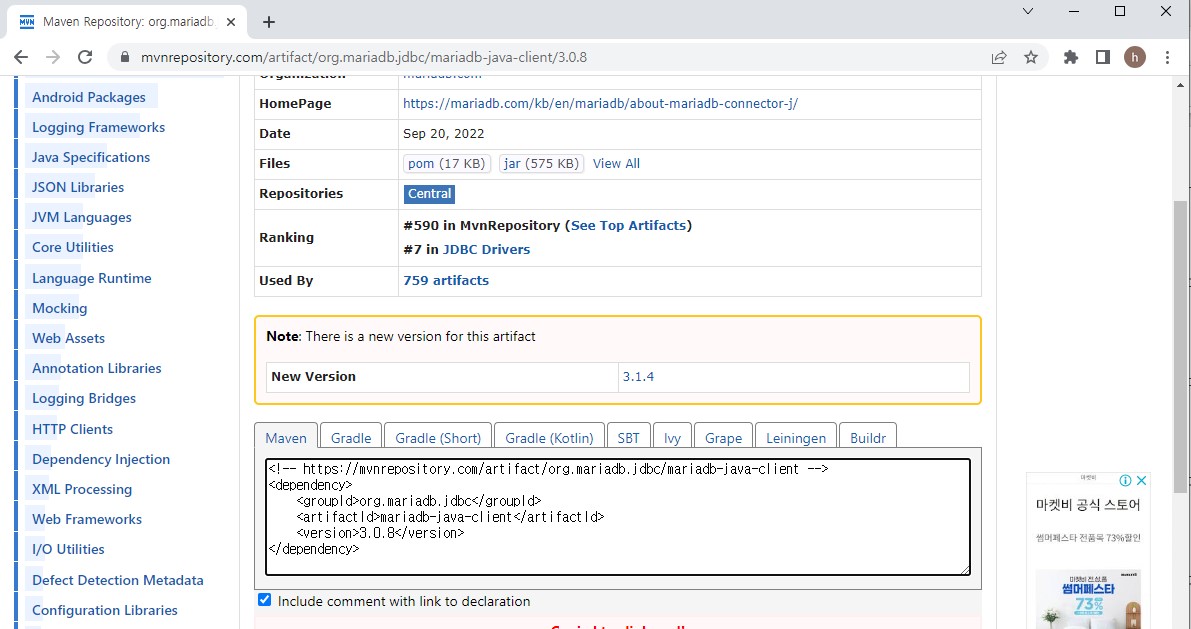 https://mvnrepository.com/artifact/org.mariadb.jdbc/mariadb-java-client/3.0.8