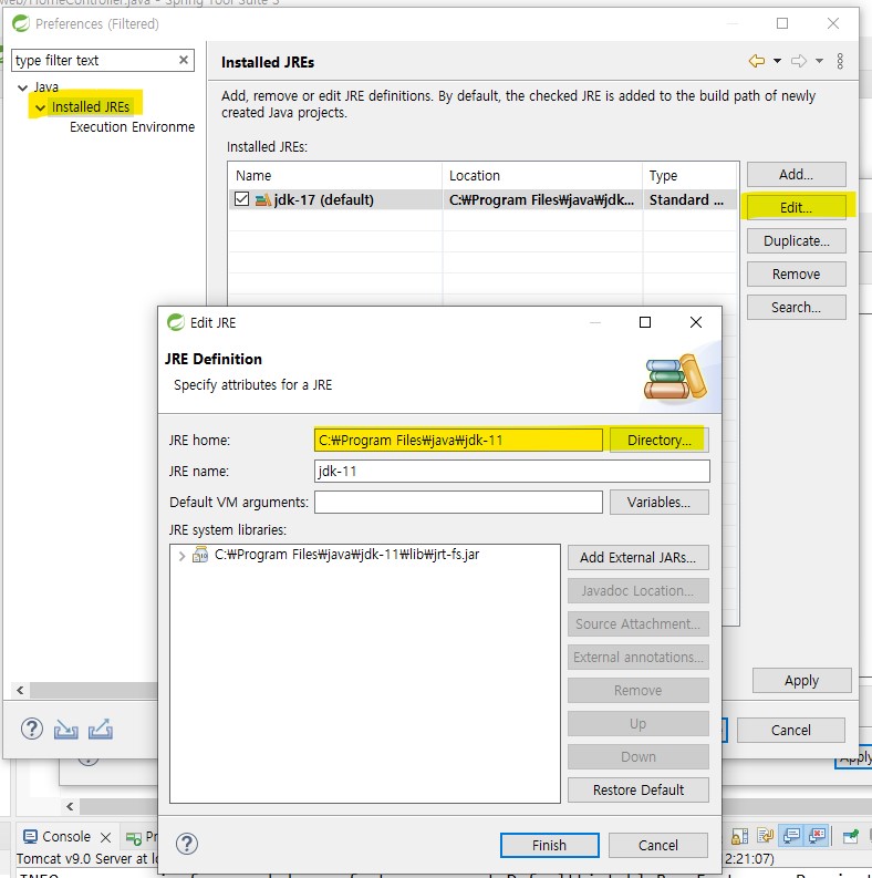 버전이 안맞아서 자바(11) 다시 설치