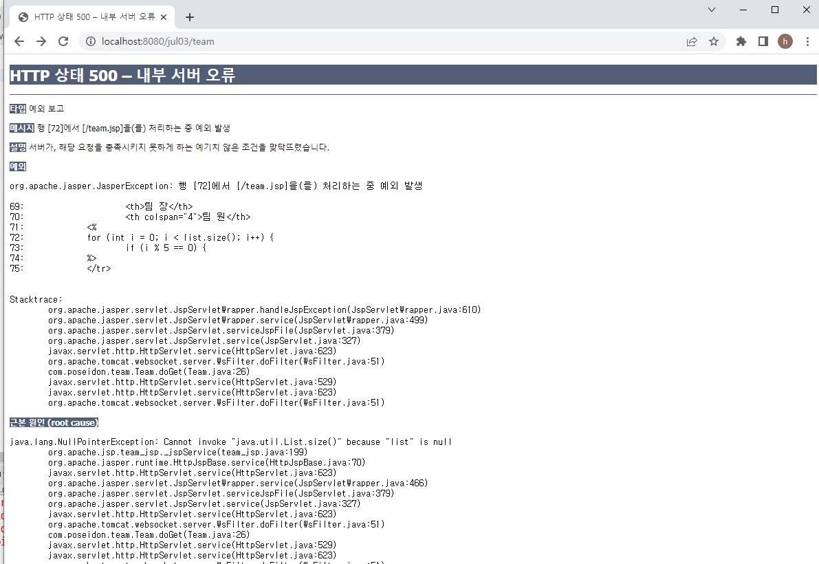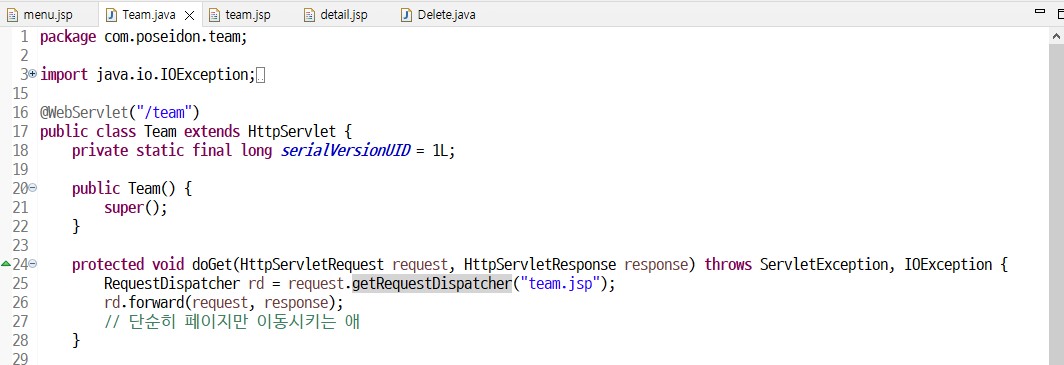 doGet()메소드를 통해 team.jsp로 넘어갈수가 없음