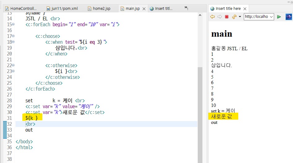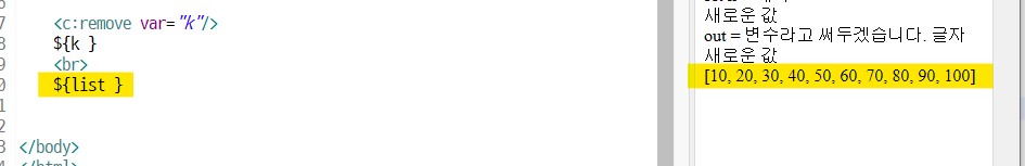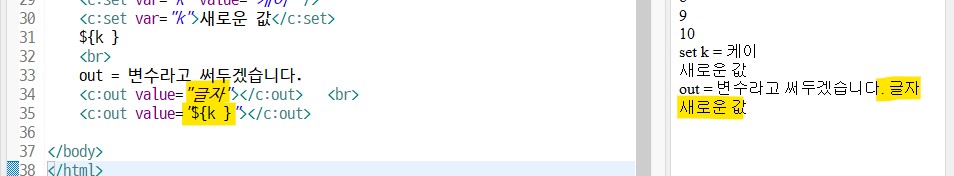 <c:set var="k">새로운 값</c:set> 닫는태그필요