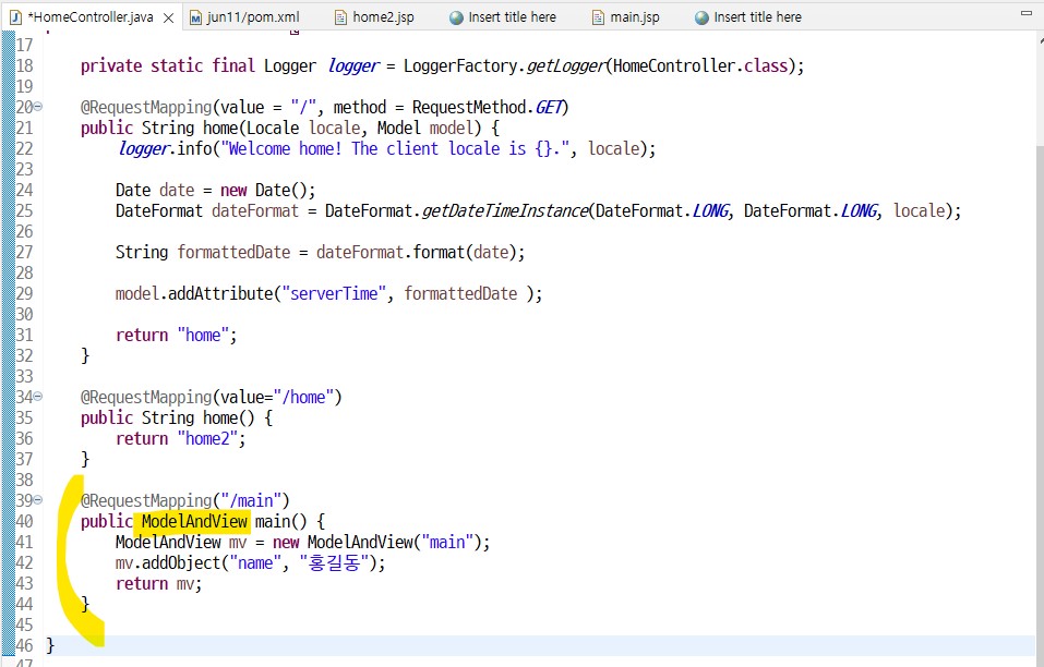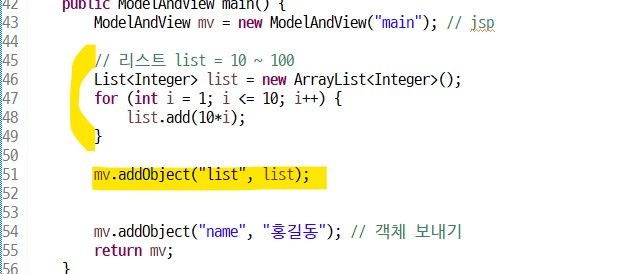 ModelAndView에 값들을 담아서 보낼예정 (값을 담아 보내는 박스라고 생각하기)