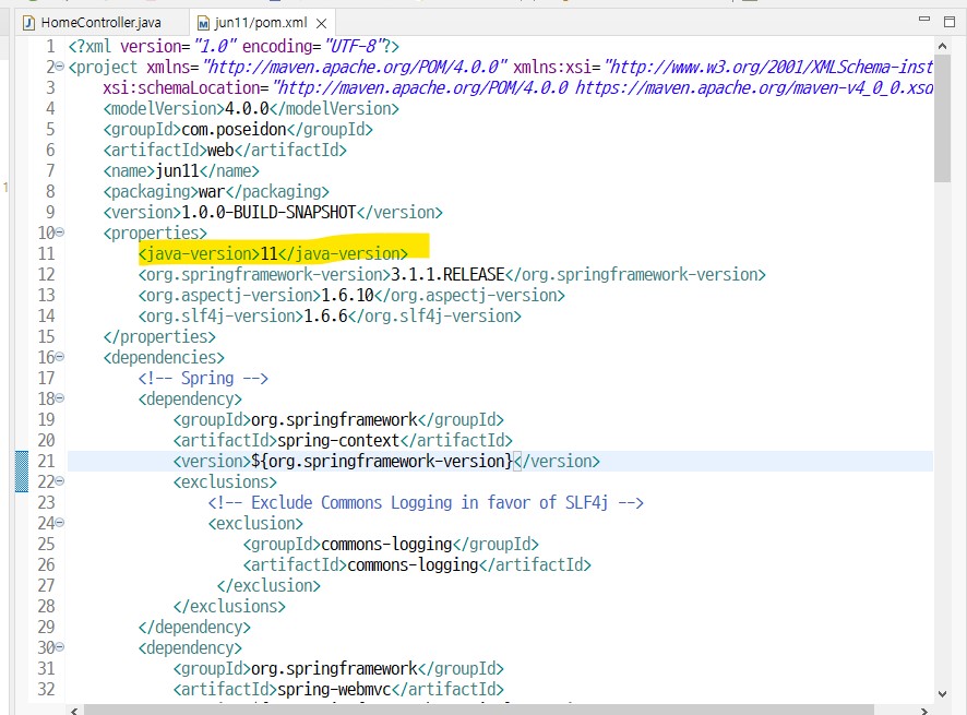 => 스프링 버전변경