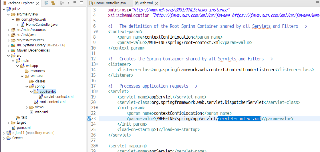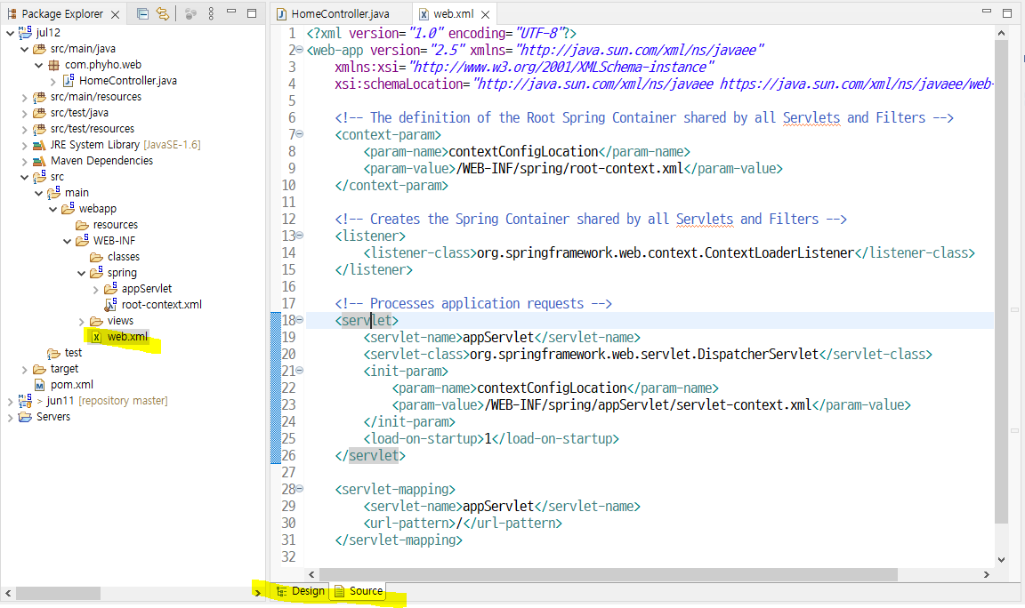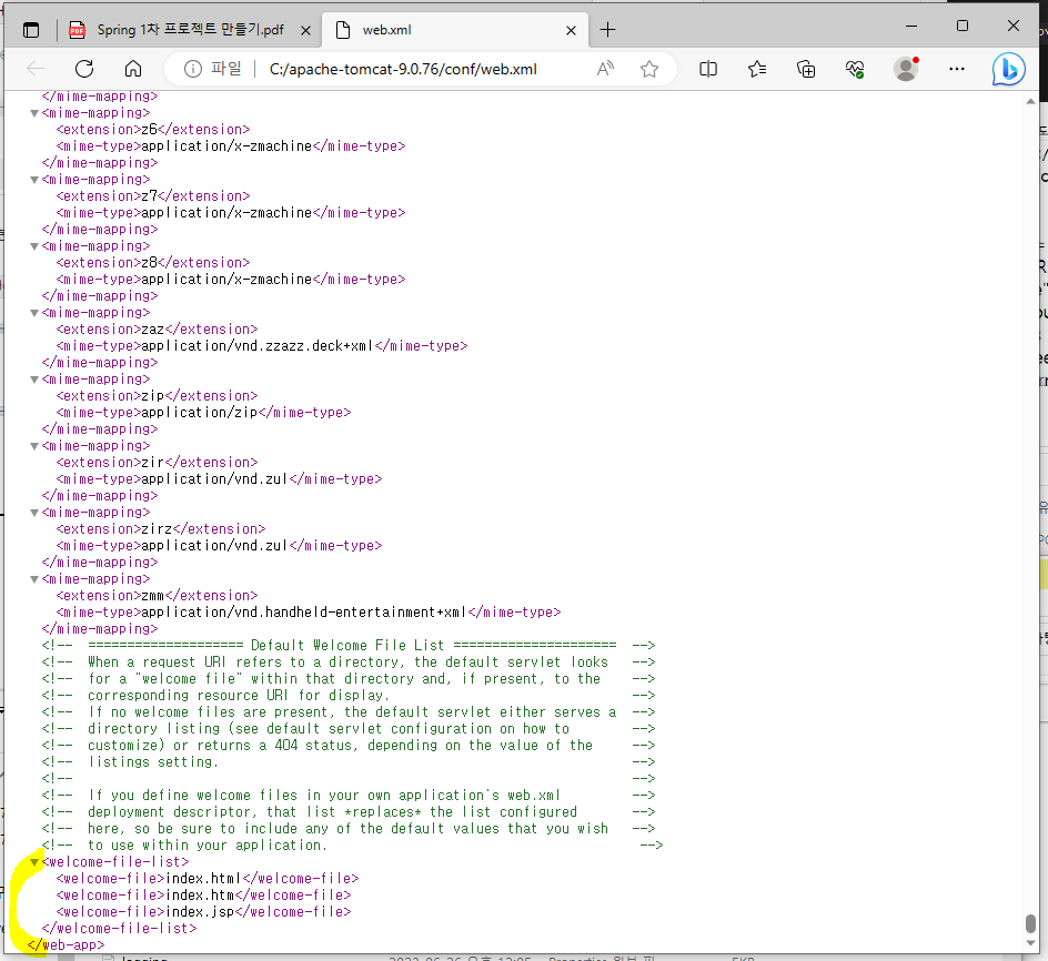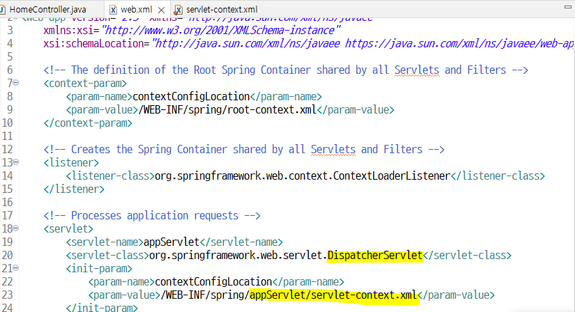listener, servlet 등등 어떤 파일들을 불러올지 요런내용들이 이 xml에 이미 만들어져 있음