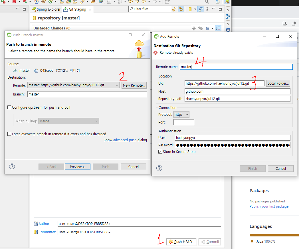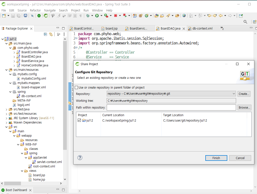 깃헙에서 jul12 이름으로 repository 생성해주고