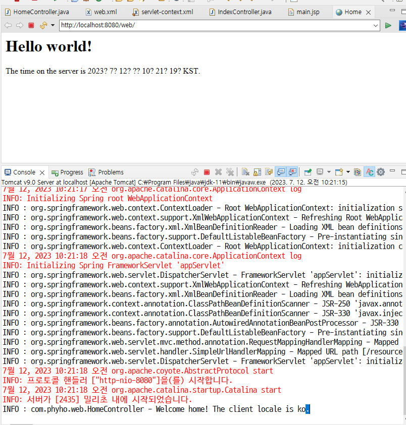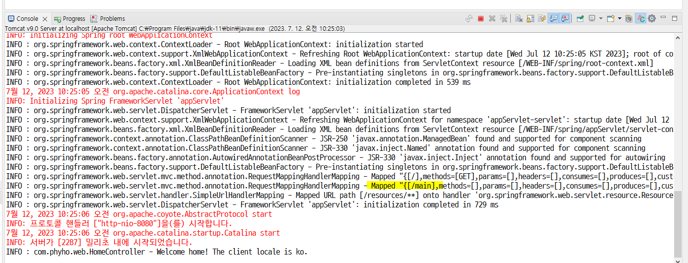 INFO : com.phyho.web.HomeControlle - Welcome home! The client locale is ko.