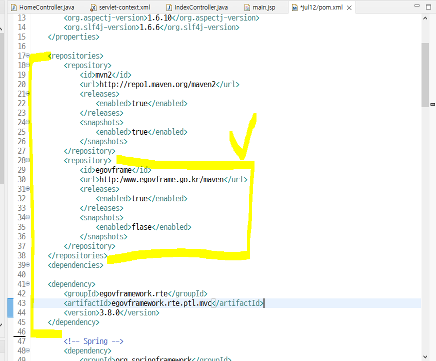 전자정부프레임워크에 만들어져 있는 저장소를 불러와서 쓰기위해