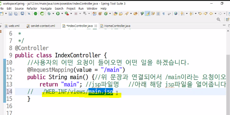 main이라는 요청이 들어오면 해당 jsp 파일을 불러옴.