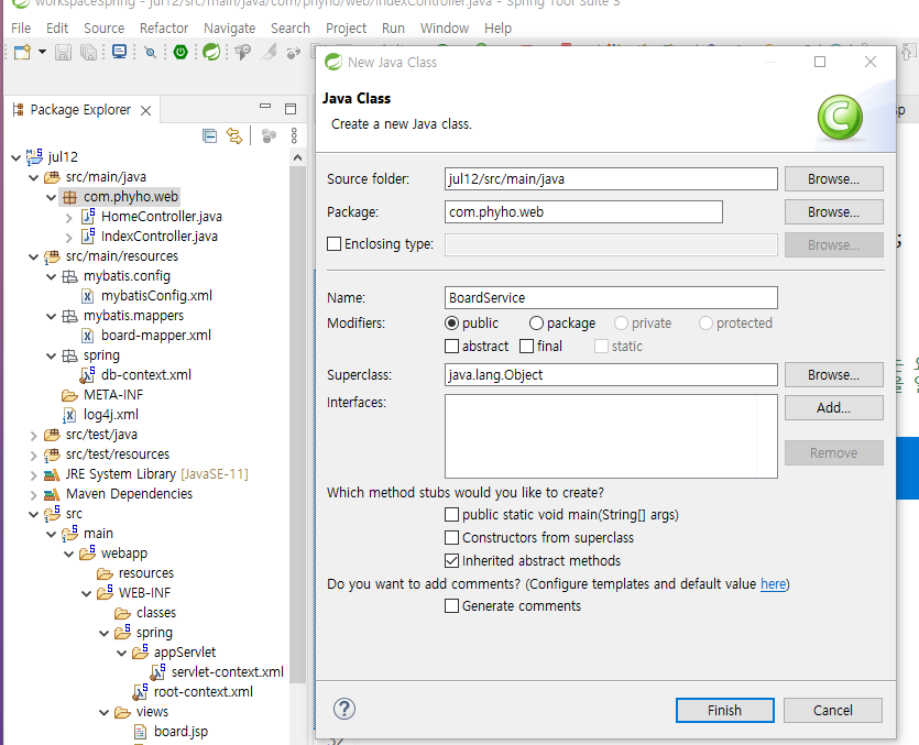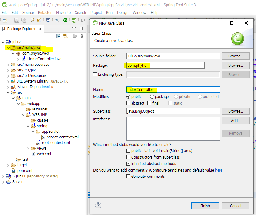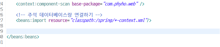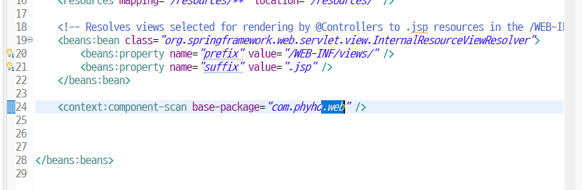 base-package = " ~~ " 내가 만든 패키지(com.phyho.web)에서 읽어옴