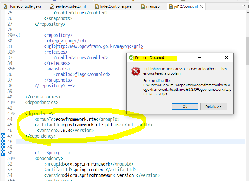 또 없으면 전자정부에서 읽어오라고 저장소 연결해준 과정임