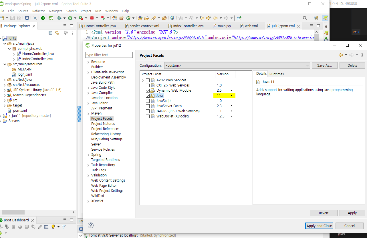 변경한 패키지 명이랑 아래처럼 맞춰주면 (.web 삭제)