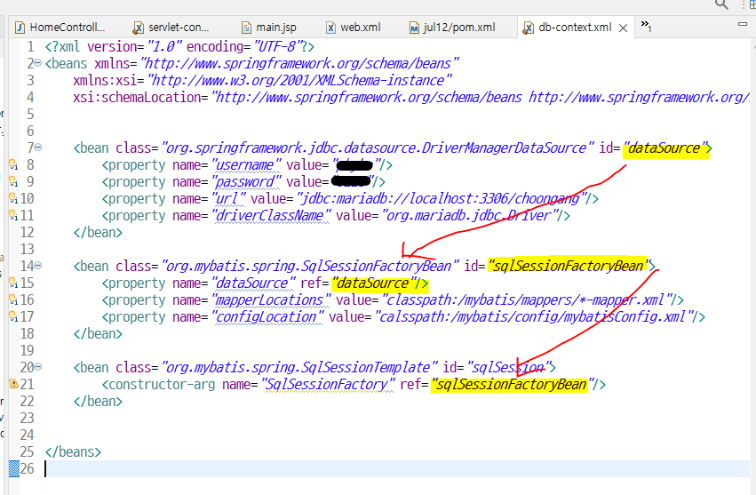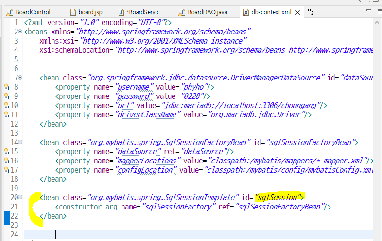 여기에서 sqlSession 은 이전에 만들어줬던 아래 캡쳐의 객체를 가져온거!!!!