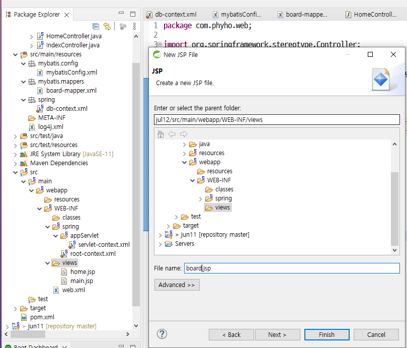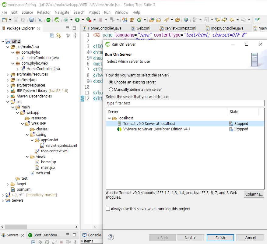 view - others 에서 jsp 파일(이름은 main으로) 생성해보자